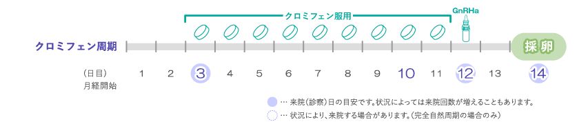 完全自然周期にクロミフェンを加えることにより、排卵のコントロールが可能になり、複数の卵胞の発育が見込め、採卵率が向上します。