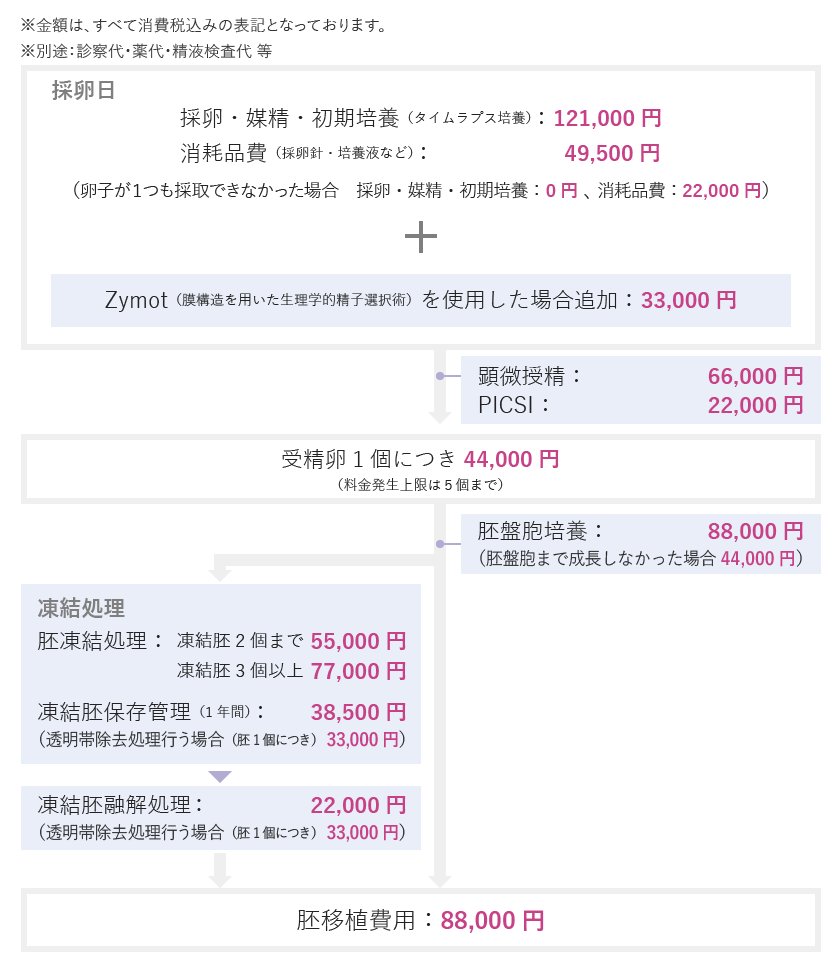 * 先進医療(タイムラプス培養:30,000円、IMSI:10,000円、PICSI:22,000円 )は自費